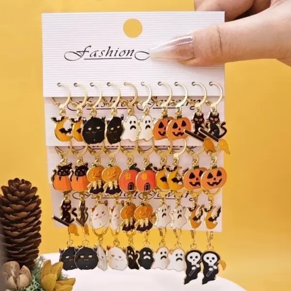 1 Set Cute Pumpkin Cat Bat Alloy Ear Hook