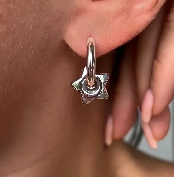 Hip-hop Rock Minimalist Star Heart Shape Metal Button 304 Stainless Steel Copper Gold Plated Hoop Earrings