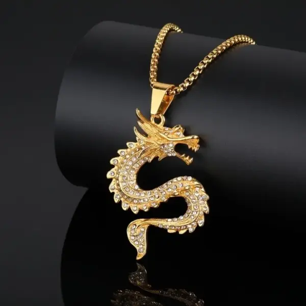 Europe And America Cross Border Hip Hop New Arrival Twelve Zodiac Dragon Pendant Chinese Style Gold-Plated Full Diamond Pendant Men’s Sweater Chains