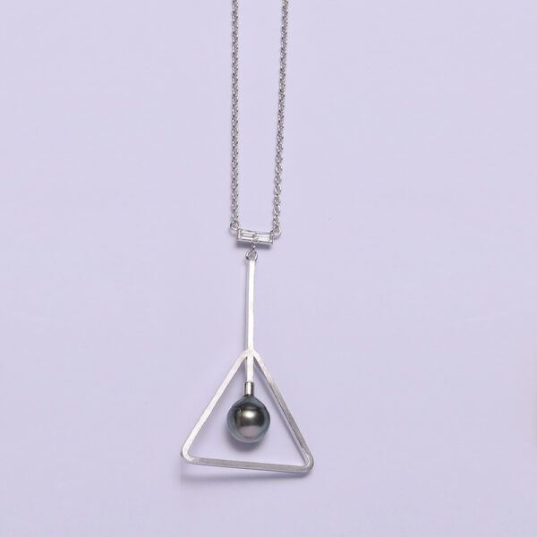 Tahiti Pearl & Cubic Zirconium With Textured Geomety Sterling Silver Necklace