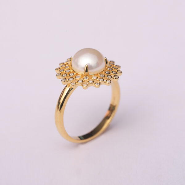 18K Yellow Gold Plated & CZ With Fresh Water Pearl Marguerite Ring