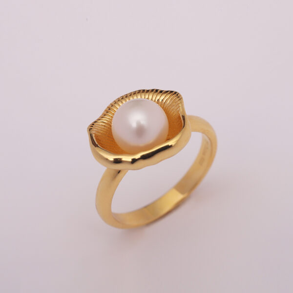 18K Yellow Gold Plated With Fresh Water Pearl Lovely Ring