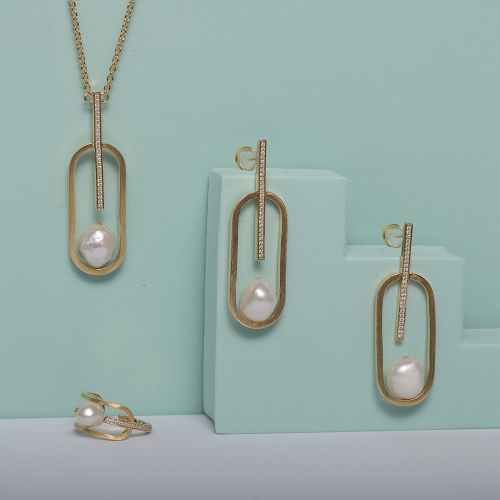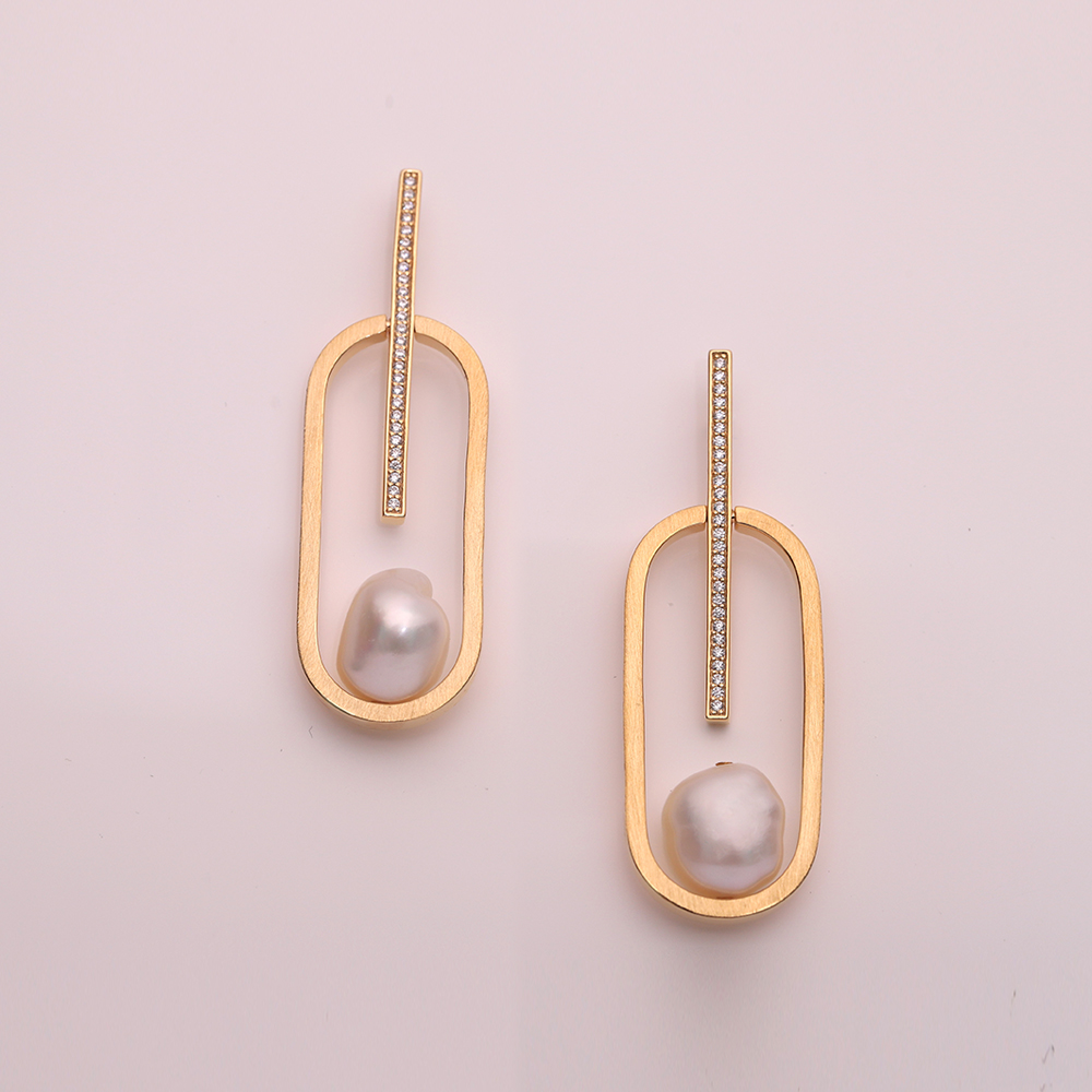 Baroque Pearl & Cubic Zirconium Geomety Earring