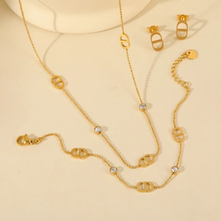 Home Other Jewelry & Accessories 18K Gold Plated Jewelry Basic Minimalist Geometric 304 Stainless Steel Zircon 18K Gold Plated Inlay Jewelry Set Ball Chain