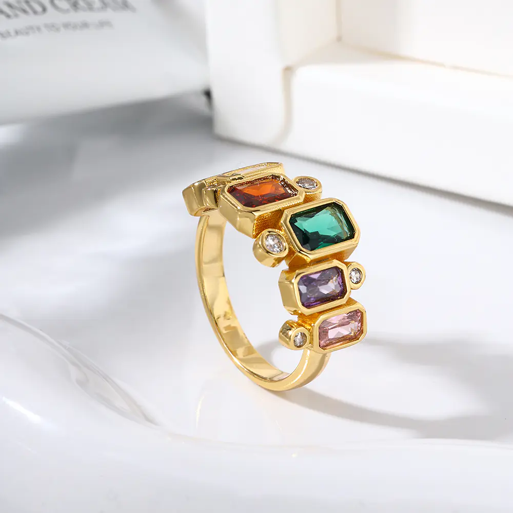 Colorful Square Zircon 18K Gold Plated Ring