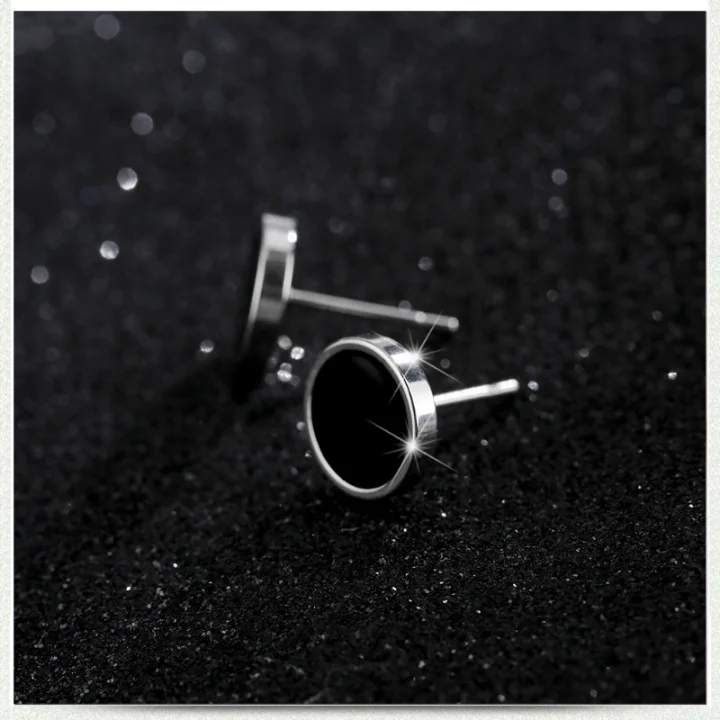 Fashion Stainless Steel Black Dumbbell Round Stud Earrings Single