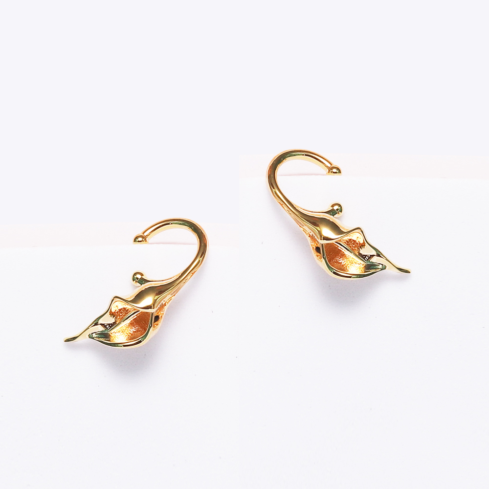 These exquisite ear cuffs feature the flower of Zantedeschia , the happy & beautiful and loyal love of symbols , hand crafted in high polished 18K yellow gold plated over Brass.