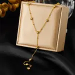 Korean Fashion Simple Ig Style Inlaid Round Diamond Accessories Chain Tassel Stainless Steel Y-shaped Collarbone Necklace