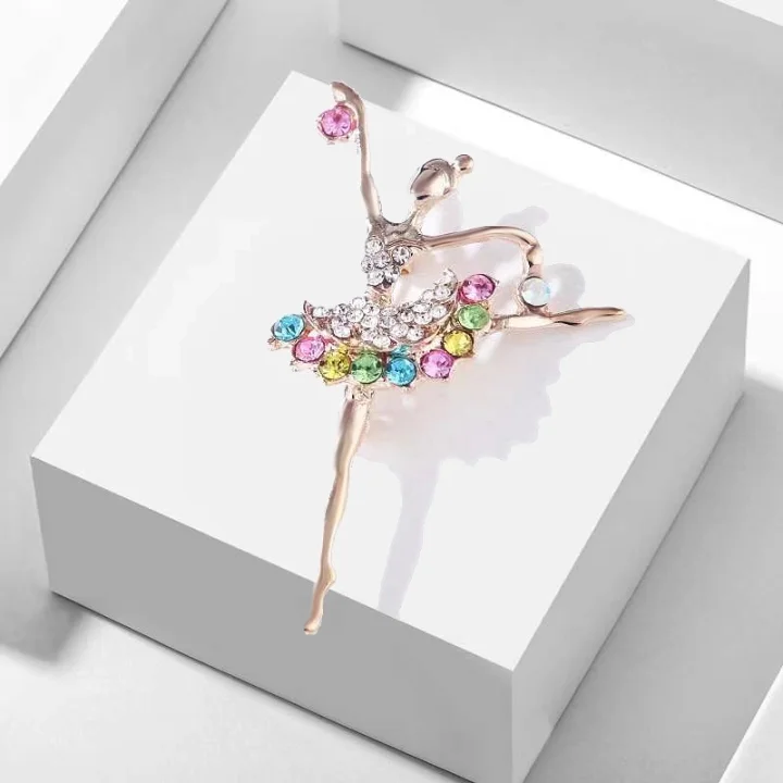 Home Other Jewelry & Accessories Brooches Gemstone Lanhao Korean Style Creative Personality Colorful Diamond Ballet Dancing Girl Brooch Corsage Women’s Clothing Jewelry