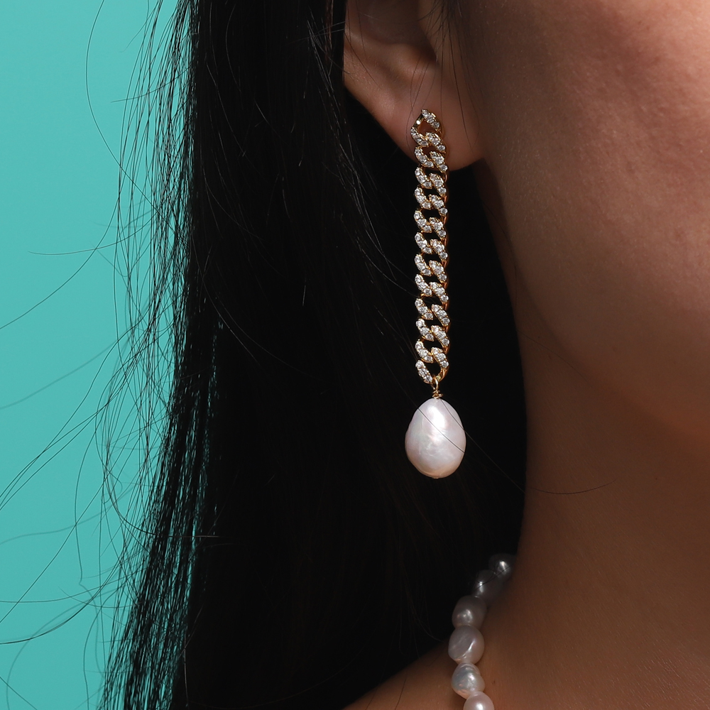 Love & Commitment Dangling Cubon Earring With Fresh Water Pearl