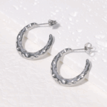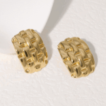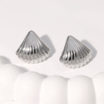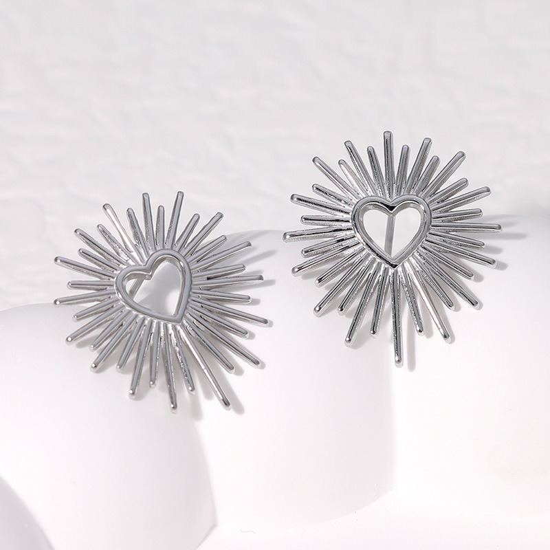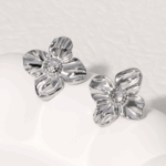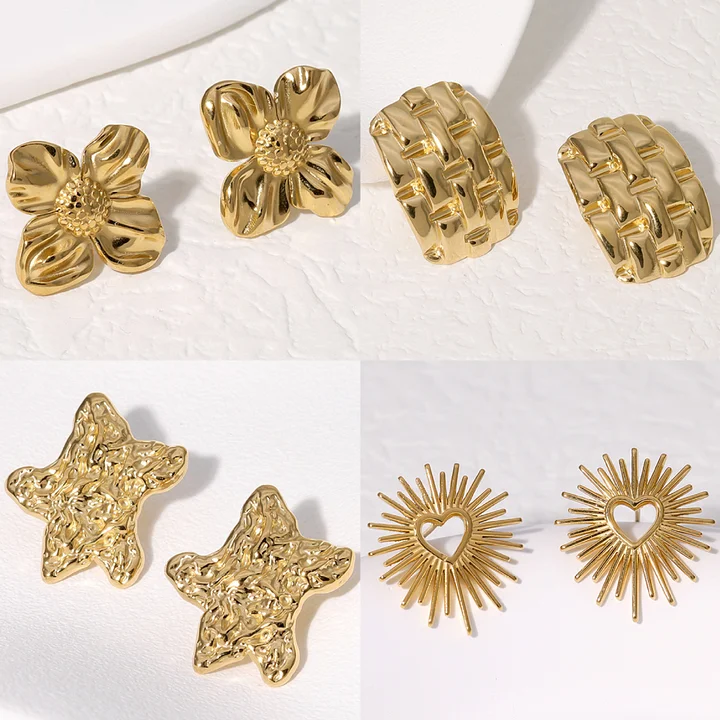 Minimalist Checkered Heart Pleated Geometric Flower Stainless Steel Electroplating Stud Earrings