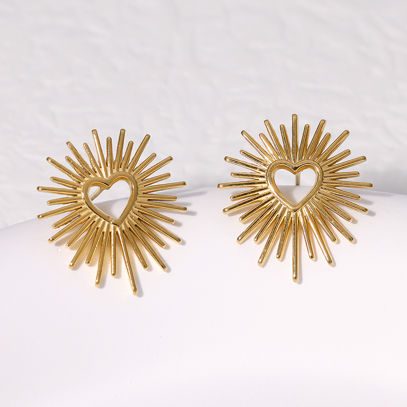 Hip-hop Rock Minimalist Star Heart Shape Metal Button 304 Stainless Steel Copper Gold Plated Hoop Earrings