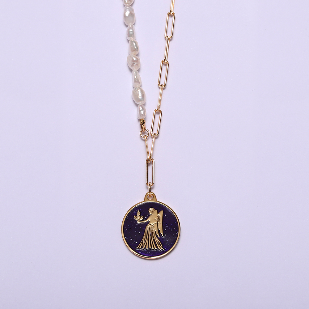 Mythology Sterling Silver 925 Zodiac Virgo Pearl Necklace