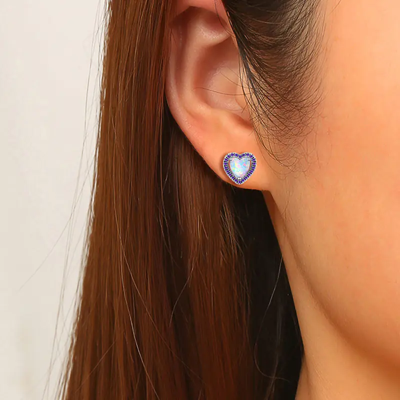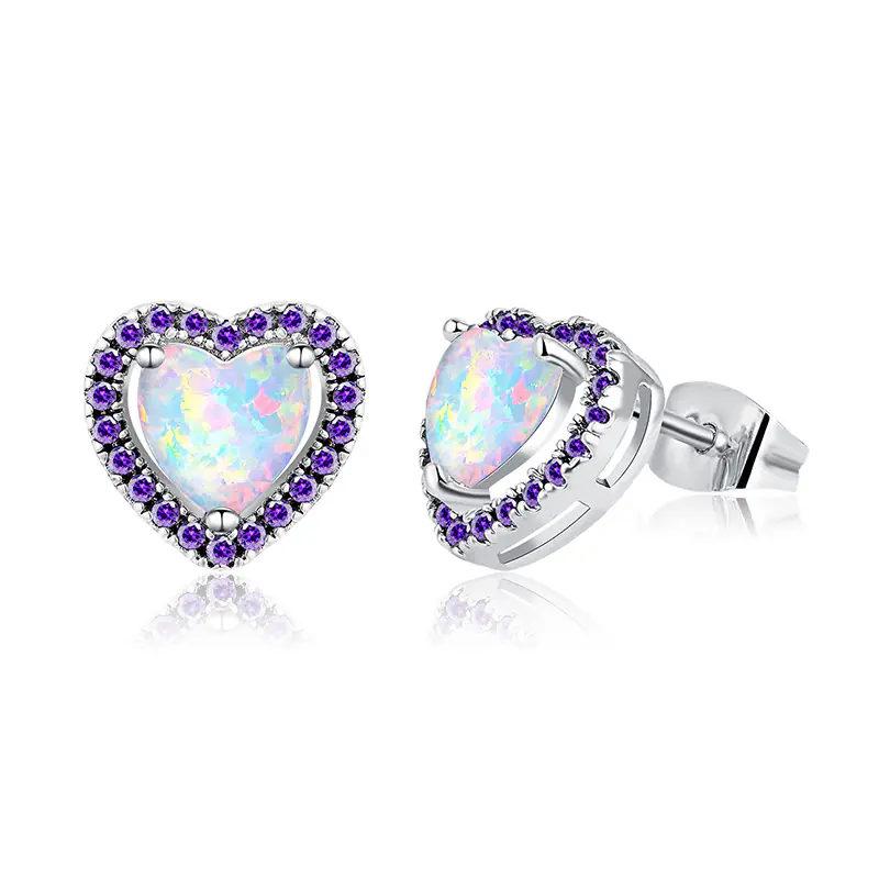New Arrival Brass Heart Opal Stud Earrings