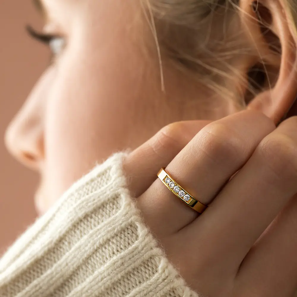 Simple Zircon 18K Gold Plated Brass Ring