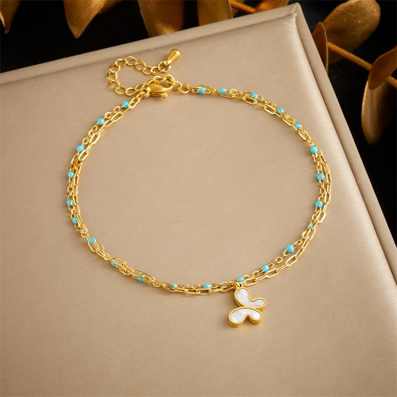 Women Fashion Flower Stainless Steel Anklets